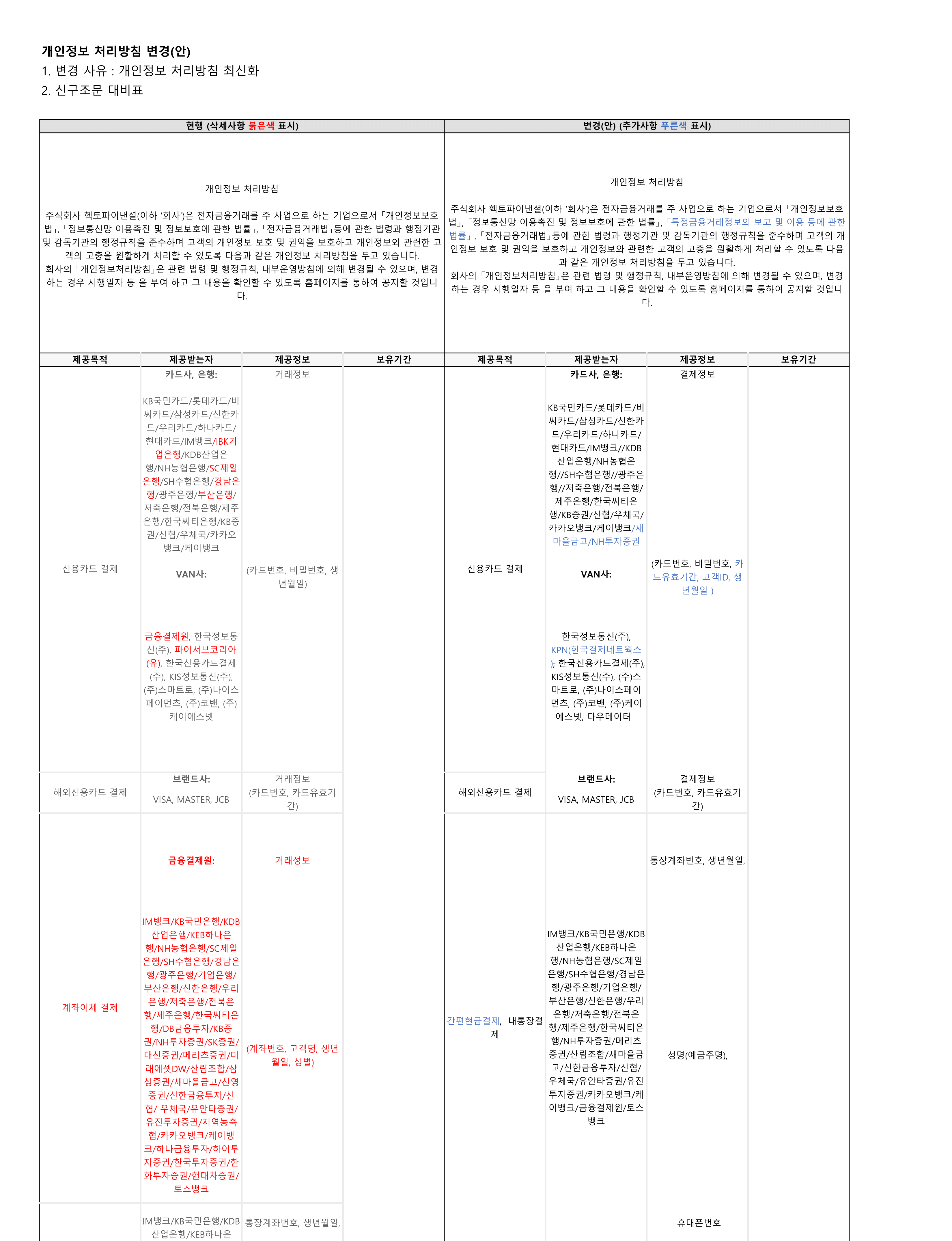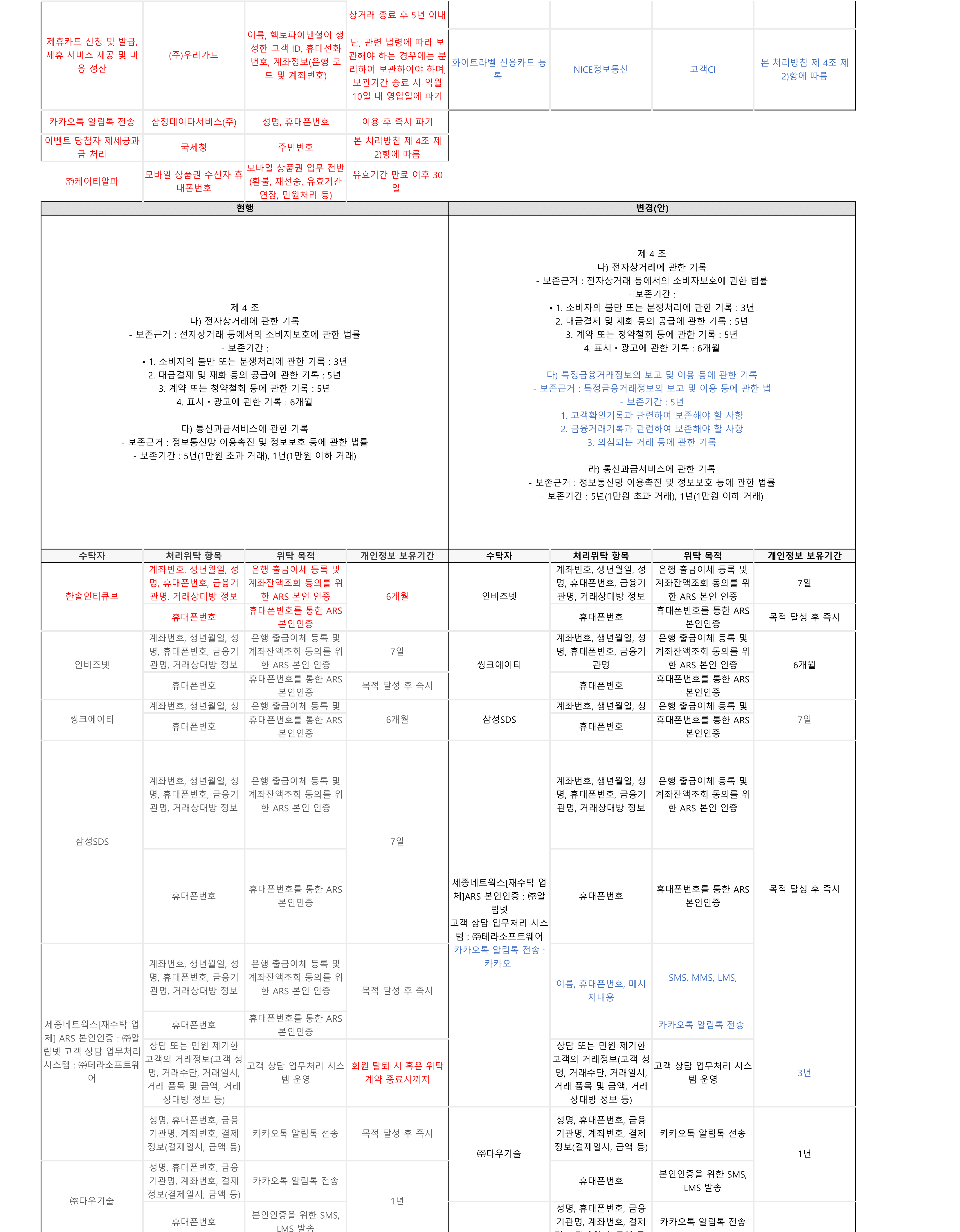 - 내용 : 개인정보 처리방침 전반의 현행화
