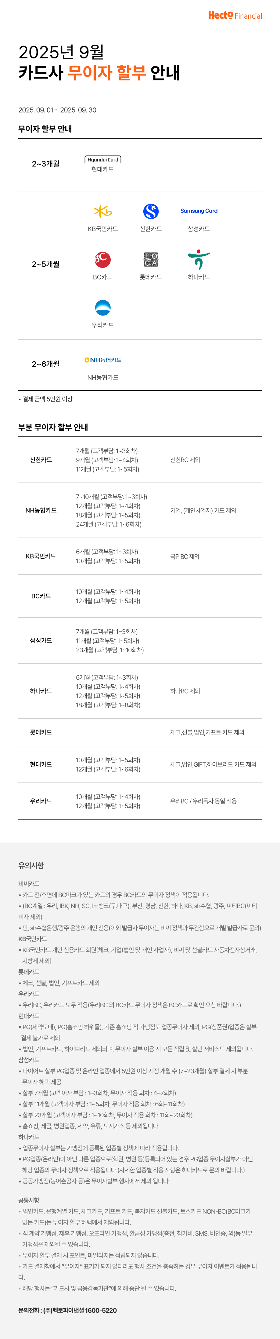 2025년 9월 카드사 무이자 이벤트를 안내해 드리니 많은 이용부탁드립니다