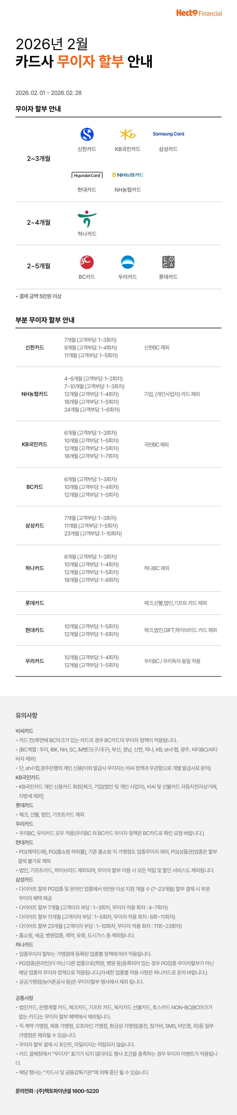 2026년 02월 카드사 무이자 이벤트를 안내해 드리니 많은 이용부탁드립니다