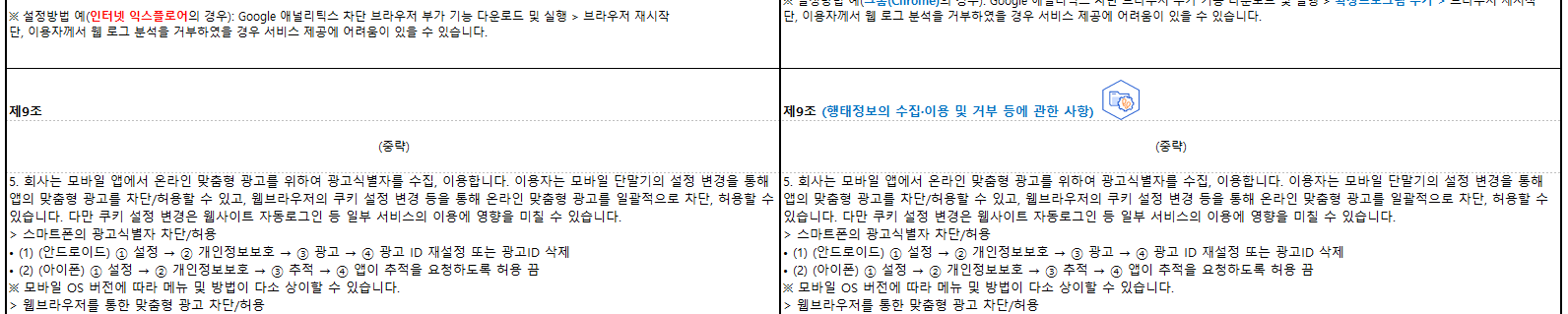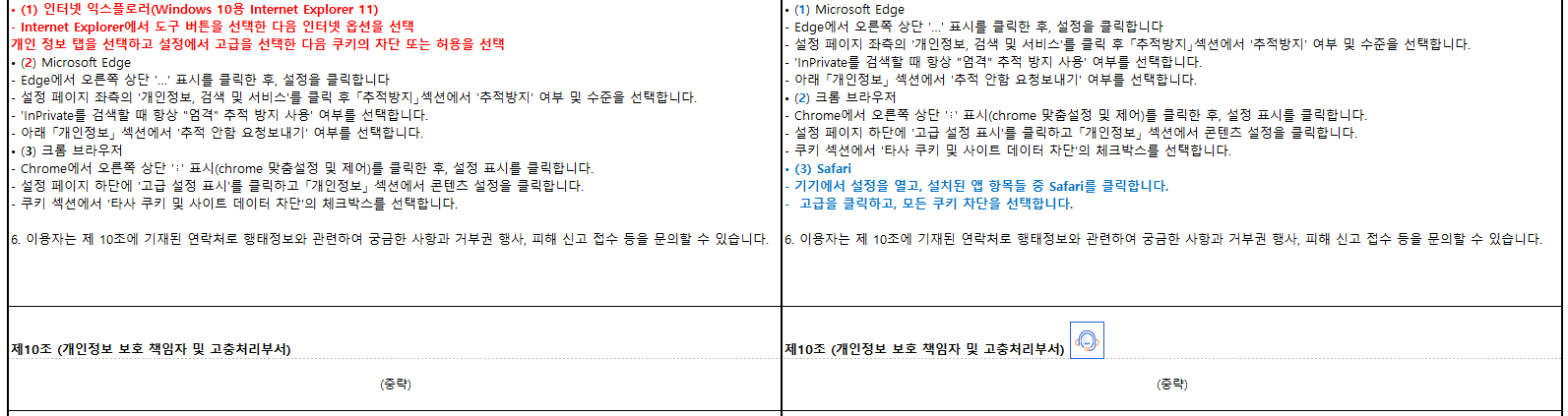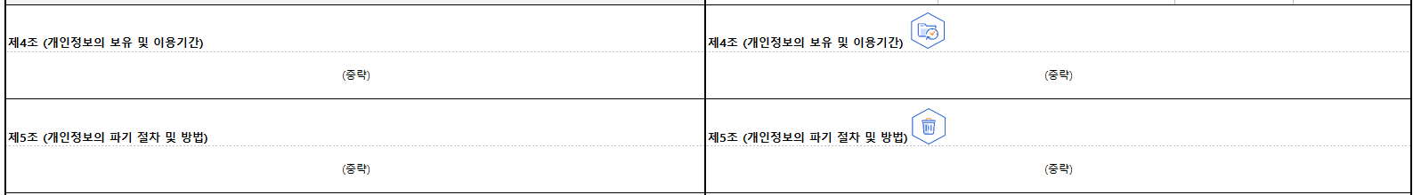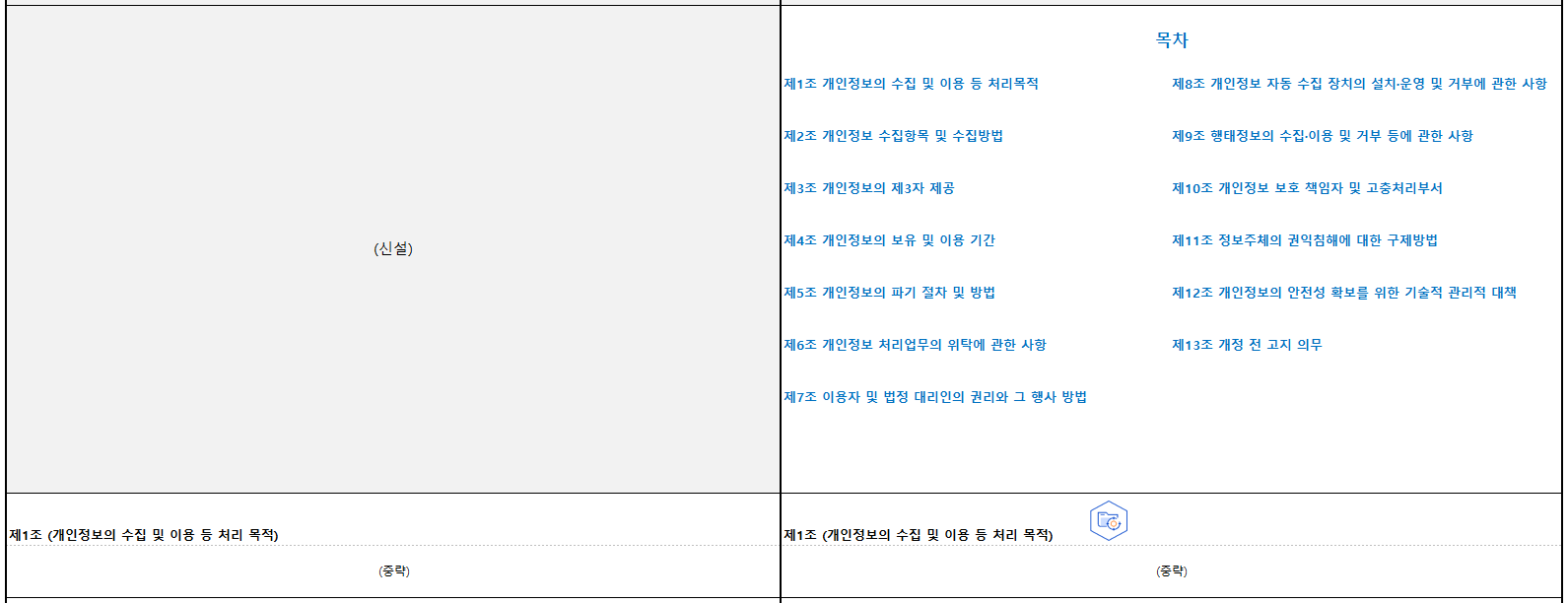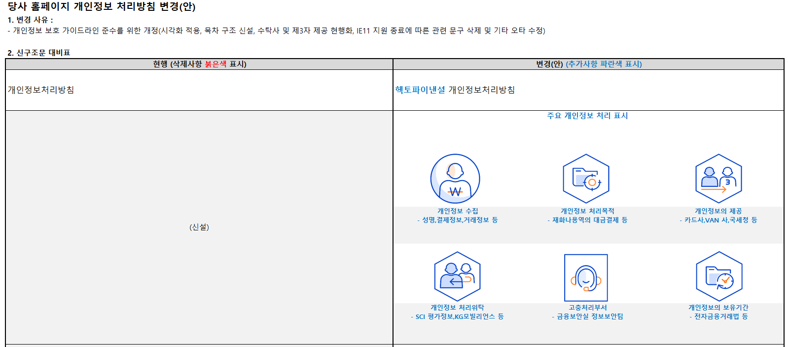 - 내용 : 개인정보 처리방침 전반의 현행화, 개인정보 보호 가이드라인 준수를 위한 개정(시각화 적용, 목차 구조 신설)