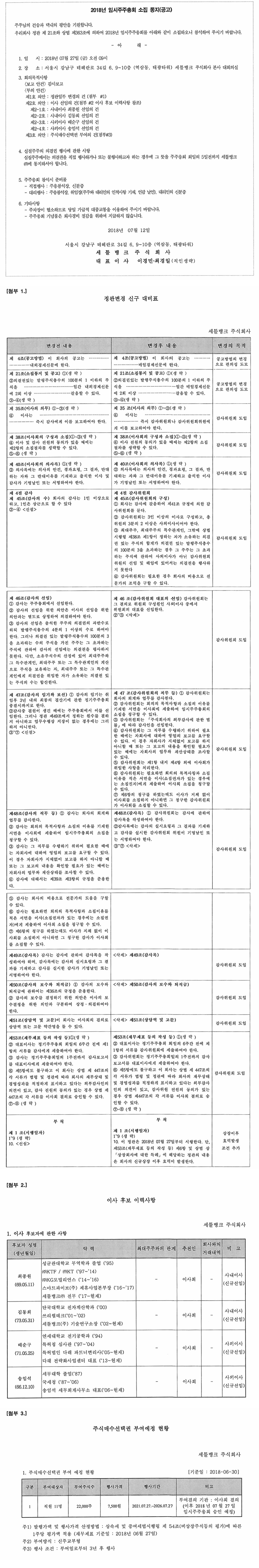 [공지] 2018년 임시주주총회 소집 통지(공고)