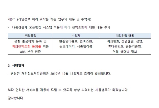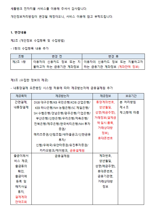 [공지] 내통장결제 서비스 이용약관 변경 안내