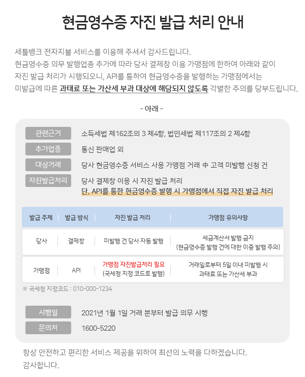[공지] 현금영수증 자진발급 처리 안내