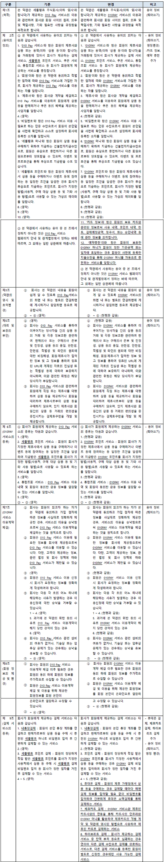 서비스를 이용해 주셔서 감사 드리며, 서비스 이용약관이 아래와 같이 변경됨을 사전 안내 드리오니 서비스 이용에 참고 바랍니다.