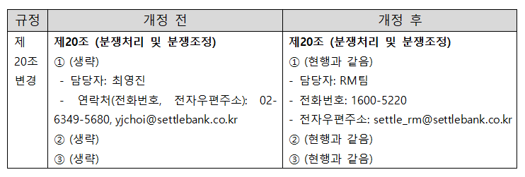 안녕하세요. 세틀뱅크입니다. 서비스를 이용해주셔서 감사드리며, 전자금융거래 이용약관이 아래와 같이 변경됨을 사전 안내 드리오니 서비스 이용에 참고 바랍니다. 1. 약관 개정 일정 - 개정일: 2022.01.27 (목) 2. 변경 사항