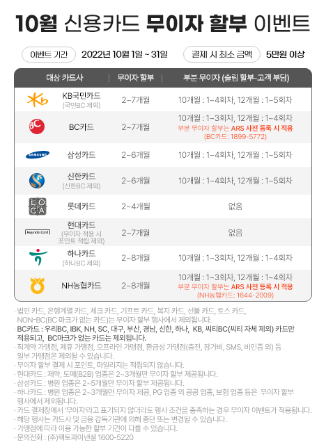 [전자결제] 2022년 10월 카드사 무이자 이벤트