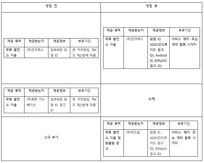 - 수정 내용: 무료 충전소 제휴처 변경 및 수집 항목 수정