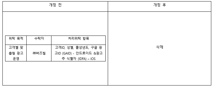 서비스를 이용해주셔서 감사드리며, 개인정보 처리방침이 아래와 같이 변경됨을 사전 안내드리오니 서비스 이용에 참고바랍니다.