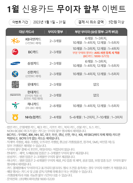 [전자결제] 2023년 1월 카드사 무이자 이벤트