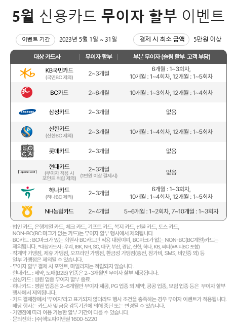 [전자결제] 2023년 5월 카드사 무이자 이벤트