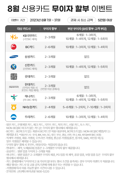 [전자결제] 2023년 8월 카드사 무이자 이벤트
