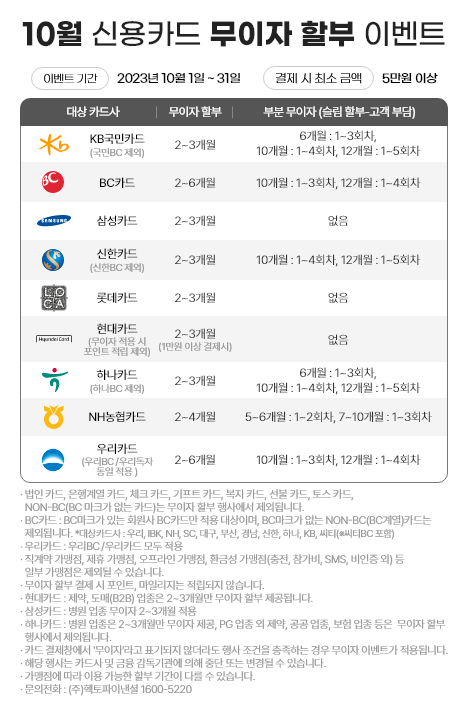 [전자결제] 2023년 10월 카드사 무이자 이벤트