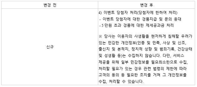 서비스를 이용해주셔서 감사드리며, 개인정보 처리방침이 아래와 같이 변경됨을 사전 안내드리오니 서비스 이용에 참고바랍니다.