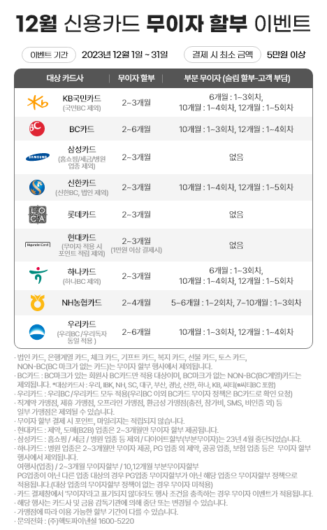 [전자결제] 2023년 12월 카드사 무이자 이벤트