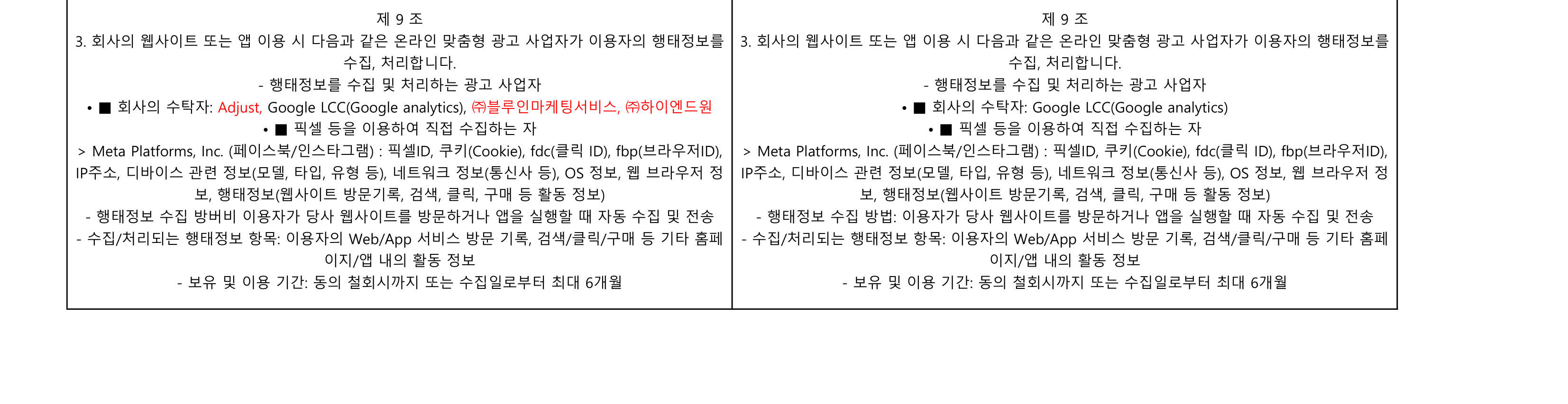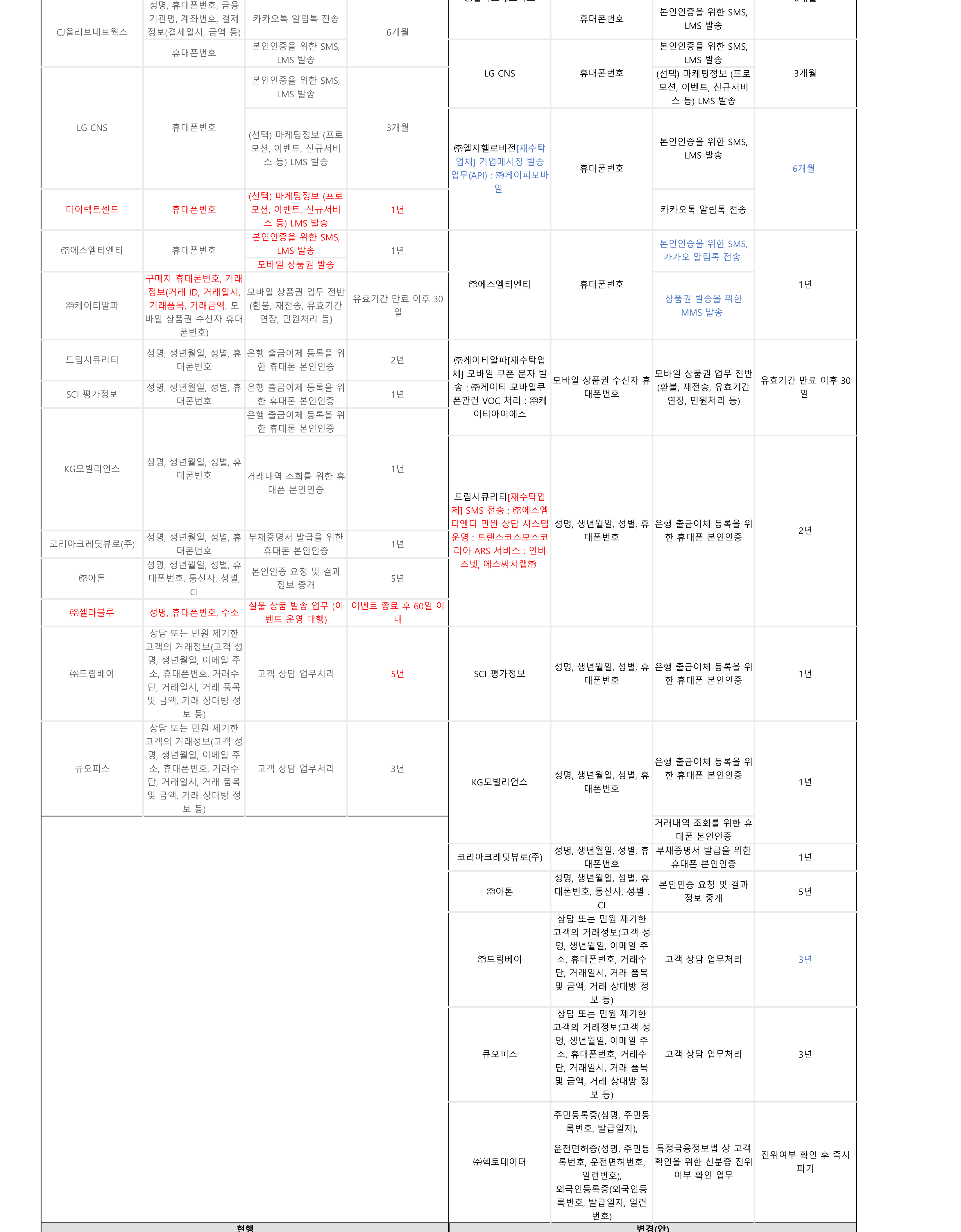 - 내용 : 개인정보 처리방침 전반의 현행화