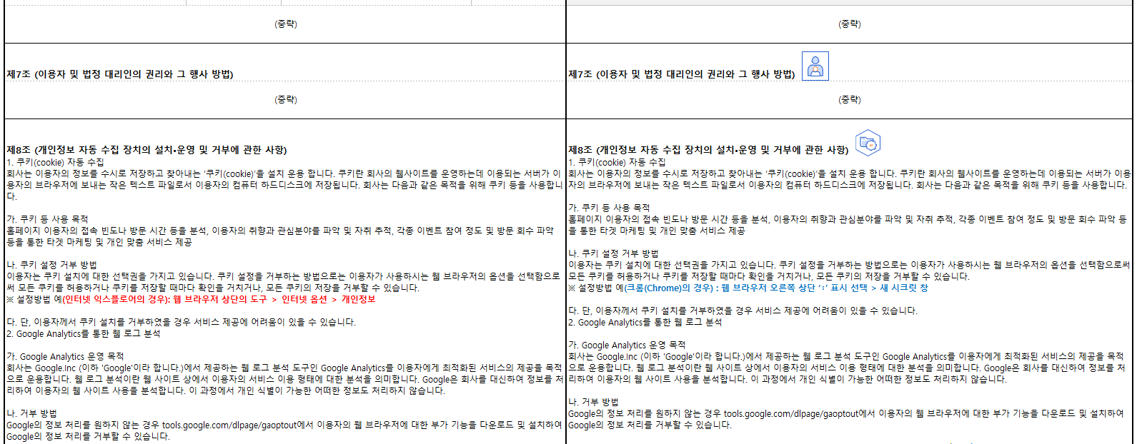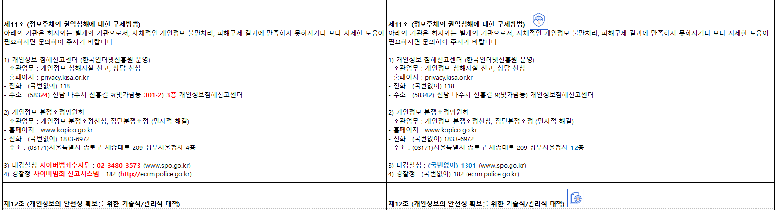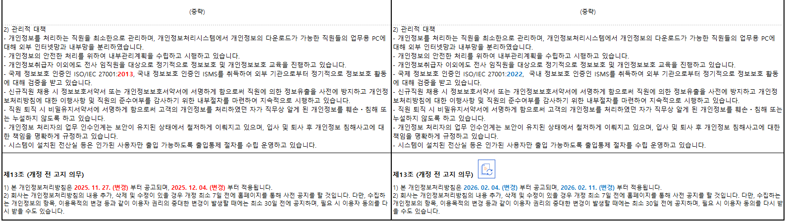 - 내용 : 개인정보 처리방침 전반의 현행화, 개인정보 보호 가이드라인 준수를 위한 개정(시각화 적용, 목차 구조 신설)